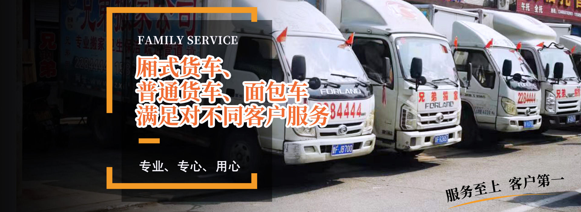 公司備有:廂式貨車、普通貨車、面包車等,滿足對不同客戶服務,為萊州及周邊地區搬家服務,提供方便。曾被廣大客戶評為“專業、專心、用心”的搬家公司。以合理收費為標準,以客戶滿意為服務質量,力作萊州人的好兄弟!您的滿意就是我們的追求!歡迎各企事業單位及個人來電咨詢!